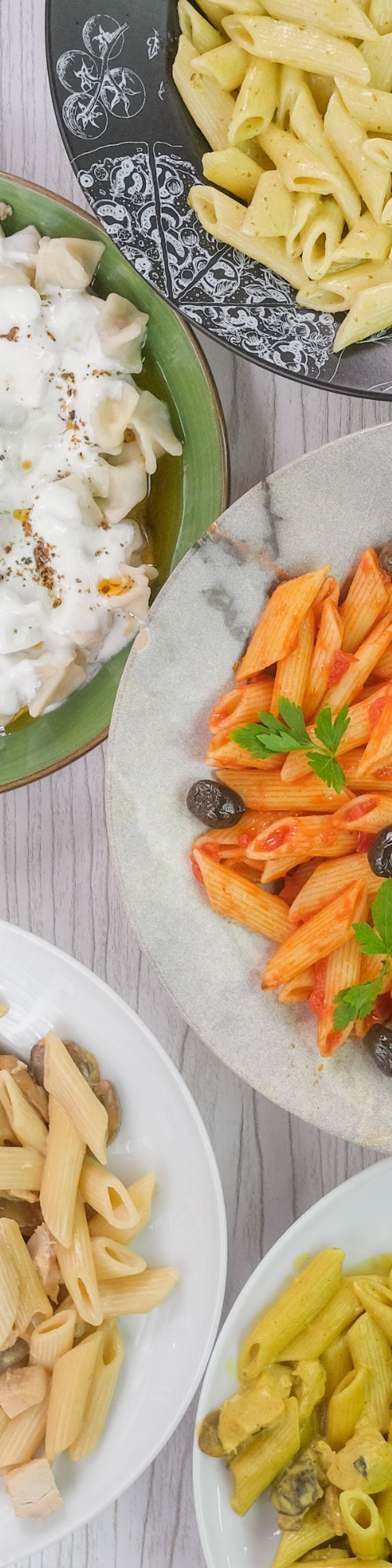 250 gr. Penne Makarna, 120 gr. Tavuk, Krema, Pesto sos ve Peynir Eşliğinde
